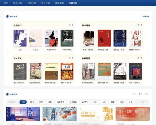 不知道读什么书?平台内设置了专题书单,每周更新,涵盖热点话题、学科前沿、重大节日/纪念日特辑等主题。同时还支持读者自荐书单,分享个人书单哦~