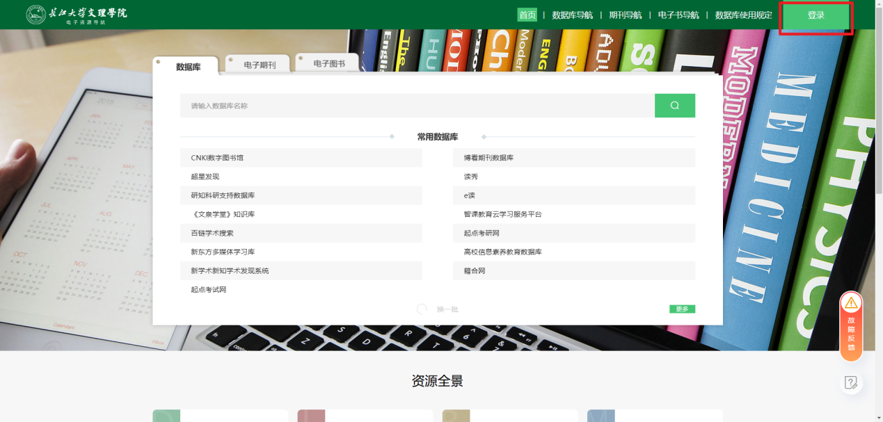 登录后,进入系统首页。博采电子资源管理平台可以根据读者的使用情况、专业,个性化推荐数据库,方便读者使用。