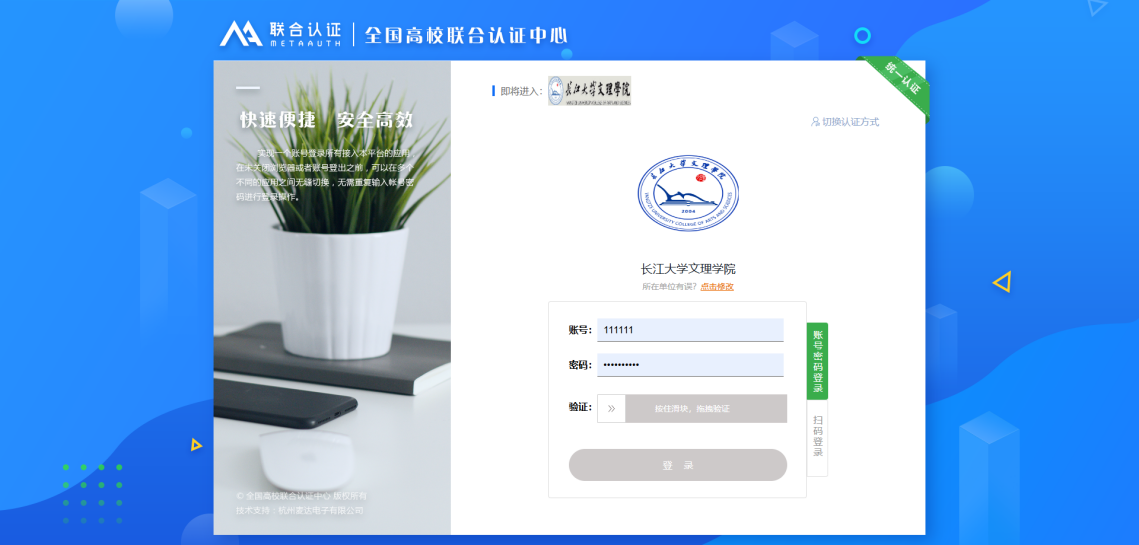 进行统一身份认证。完成认证后,校内、校外访问无缝衔接,随时随地都可以访问系统,无需其他插件。
