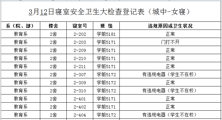 2020-2021学年第二学期第2周寝室检查结果通报