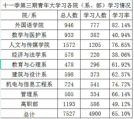bw必威西汉姆联官方网站十一季第三期青年大学习各院(系、部)学习情况公示