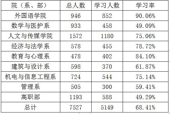bw必威西汉姆联官方网站十一季第七期青年大学习各院(系、部)学习情况公示