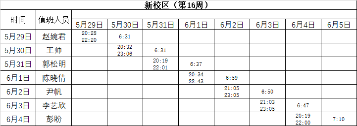 2022-2023学年第二学期第16-17周学工人员寝室值班通报