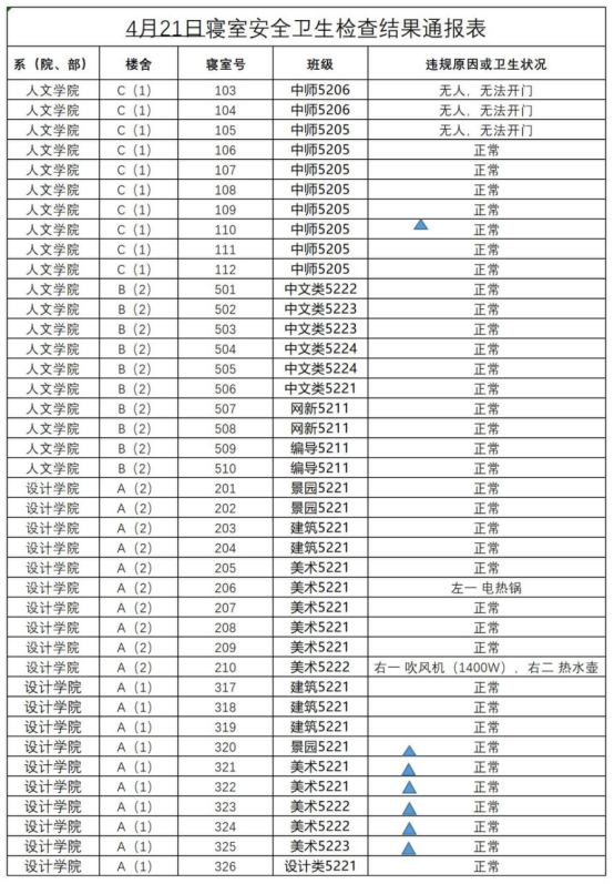 2022-2023学年第二学期第十周寝室安全卫生抽查结果通报