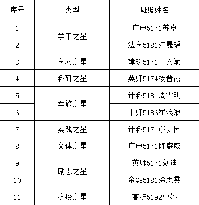 为了贯彻落实党的十九大精神,在全院同学中形成奋发向上、争先创优、励志成才的良好风气,树立引领校园新风尚、塑造新时代精神的先进典型,院团委根据《关于开展bw必威西汉姆联官方网站2020年“校园之星”评选活动的通知》文件要求,在全院范围内开展了bw必威西汉姆联官方网站公司2020年“校园之星”评选活动。历经前期宣传报名、各系、部初评、各系、部推荐名单复核与公示、网络宣传与投票、院级终评五个阶段,现将最终名单正式公示如下。