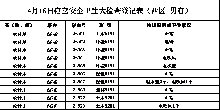2020-2021学年第二学期第7周系(院、部)早晚自习考勤通报