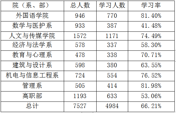 bw必威西汉姆联官方网站十一季第七期青年大学习各院(系、部)学习情况公示