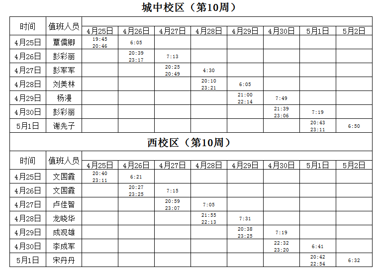 2021-2022学年第2学期第9-10周学工人员寝室值班通报