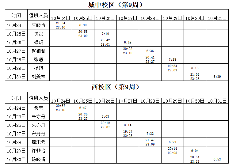 2022-2023学年第1学期第9周学工人员寝室值班通报