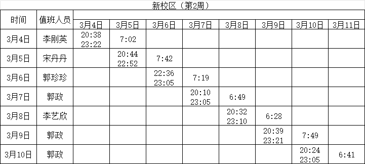 2023-2024学年第二学期第1-2周学工人员寝室值班通报