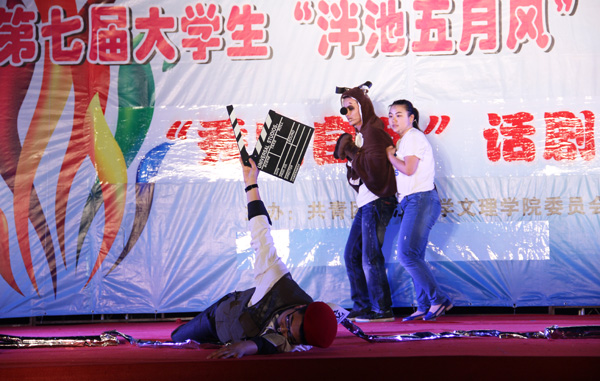 动感的开场舞以新奇神秘的风格赢得了观众阵阵惊喜的掌声,随之把大家带入了话剧之夜的浪漫氛围;“少年强,则国强”,来自中文5111班的《恰同学少年》剧情刚一上演,竟激起了欢呼的热潮,少年毛泽东的扮演者慷慨激昂的吟诵,带领大家走进了光辉而难忘的红色岁月;理工学部选送的话剧《只因有爱》贴近生活,讲述了一个当代老员工从迷茫中走向成熟的故事,道出了千千万万父母的心声。情牵家人殷切期盼的眼神,凄厉委婉难舍难分的别情,阳光灿烂诙谐幽默的歌声,精彩纷呈百转回肠的剧情,无一不牵动观众兴奋的兴奋点。