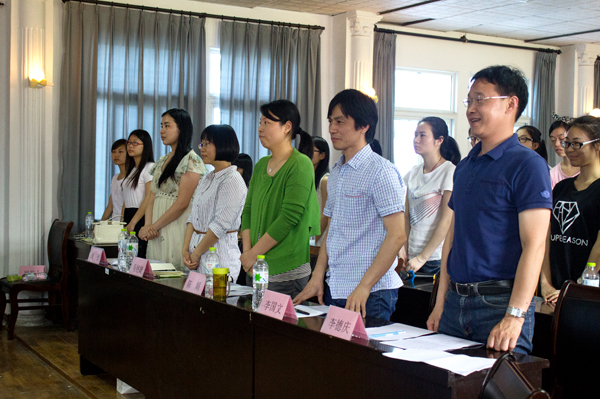 审判开庭,全体人员起立(前排为本次活动评委)