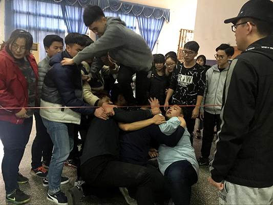 活动分上午、下午两场。现场气氛热烈,活动紧张而刺激。上午,在田径运动场,员工会全体成员分小组开展了包括“珠行万里”、“达芬奇密码”、“驿站传书”等项目的素质拓展;下午,在工会三楼,开展了“穿越火线”、“挑战150”、“抢滩登陆”等项目的训练。新颖有趣的游戏激发了同学们的参与热情,大家齐心协力、全心投入,在优异的表现中进一步提升了团队意识,体验了分工协作、团结互助和挑战自我的重要性。