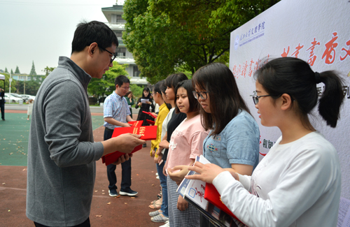仪式上,中文(师范)5163班汪瑞琪、韩语5161班李再理、 会计5164班廖铬富等十名同学受到表彰,被授予“读书之星”荣誉称号,图书馆副馆长让华、荆州市新华书店负责人官建忠为获奖者颁发荣誉证书。