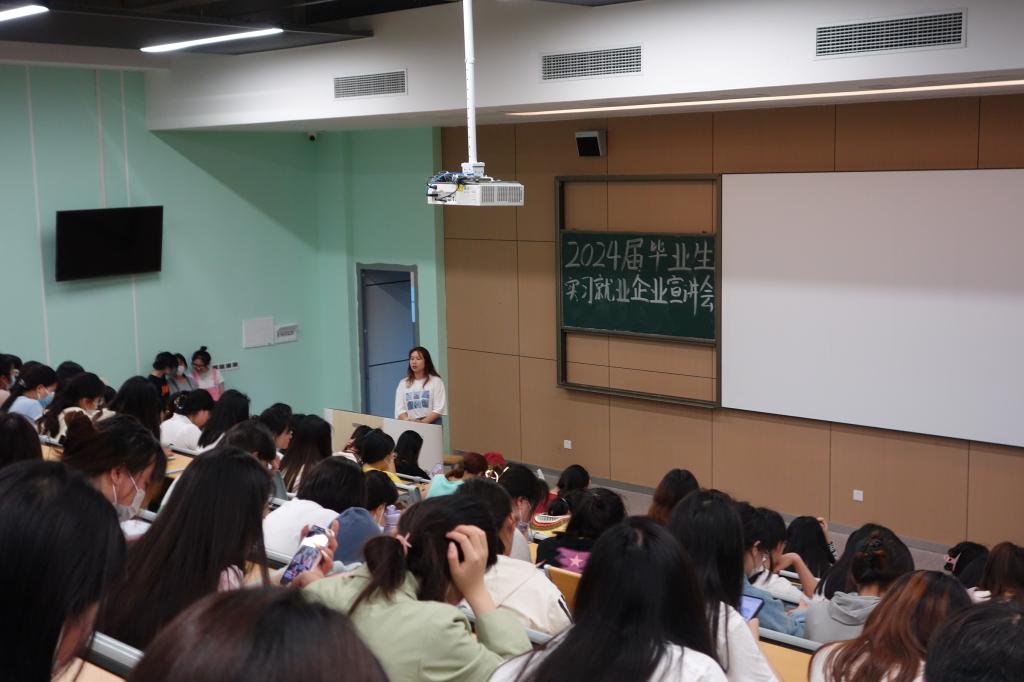 4月23日晚七点,团委在教学楼B-213召开2024届毕业生实习就业企业宣讲会。本次会议由辅导员许静婷主持。
