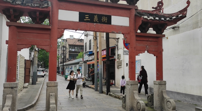 当天下午,田从祥老师、郑聪老师带领参赛团队秦志伟、熊钰煊等同学到三义街街区进行问卷调查、实地勘探与测绘,深入了解街区现状并探访居民生活情况以及对街区保护利用的意向与建议。