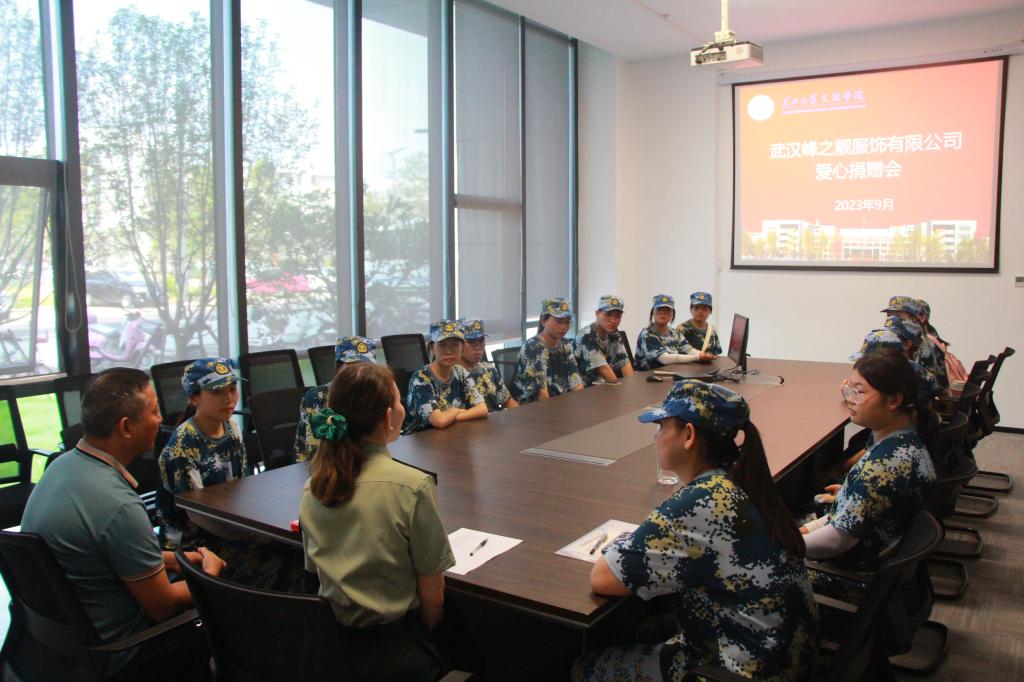 9月10日上午,员工工作部在图书馆104会议室组织开展了爱心捐助活动。武汉峰之靓服饰有限公司负责人夏至以实际行动奉献一份爱心,贡献一份力量。活动由党委员工工作部部长李刚英主持。