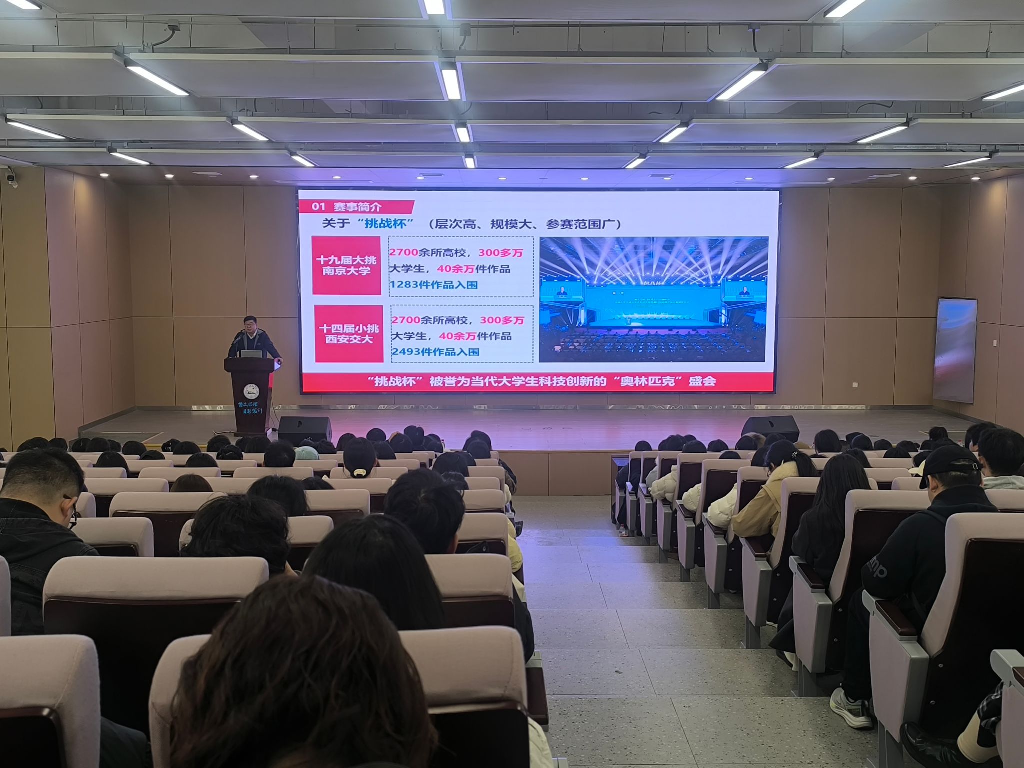 2026年1月16日,团委在B112学术报告厅开展2026年“挑战杯”老员工创业计划竞赛启动仪式暨专题培训会,校团委书记陈海波主持会议,各公司教师代表、员工共计约300余人参加了此次培训会。