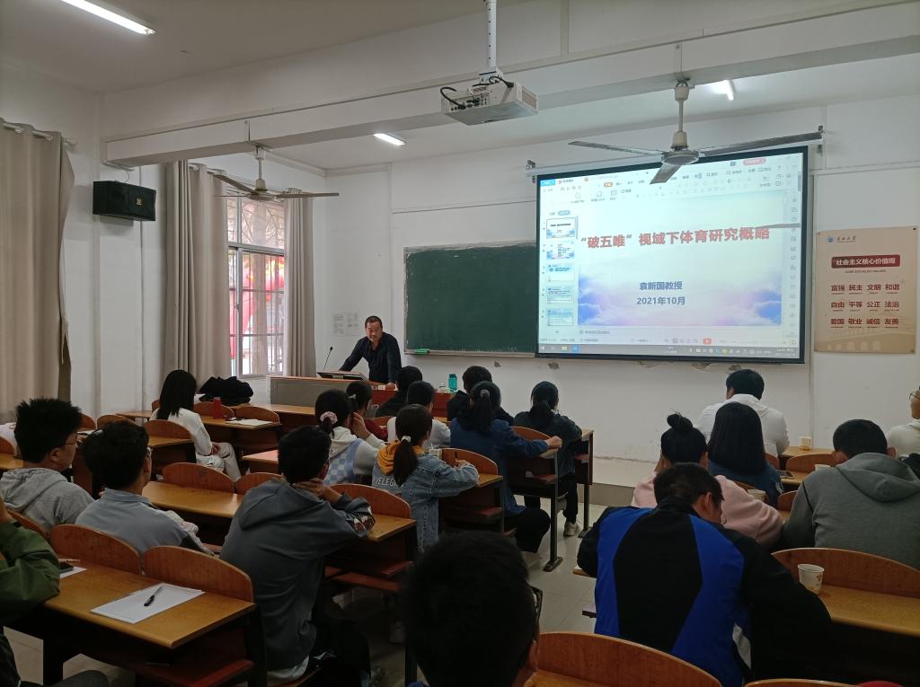 本网讯(通讯员 姚立)10月14日下午在西校区4-105室,bw必威西汉姆联官方网站教育与体育公司袁新国教授开展了以《“破五唯”视域下体育研究概略》为主题的讲座。体育系主任介博、副主任胡杜娟及全体师生参加了本次活动。
