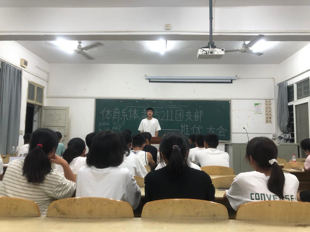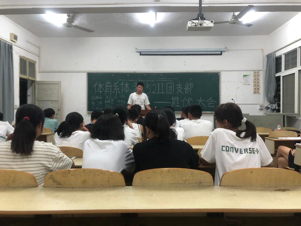 本网讯(通讯员门世豪)9月17日晚20:30,,体育系西校区在2教302开展了“2021级体教5211班团支部推优大会”活动,参会人员有:体育系党支部组织委员邱凤霞、体育系教师兼体教5211班班主任徐勇,以及体育系2021级辅导员门世豪参加了本次活动。
