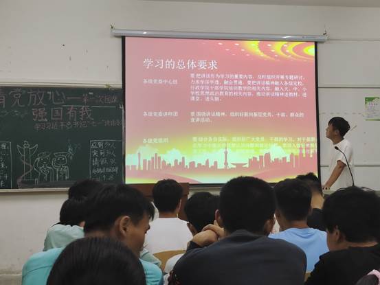 同时,辅导员也积极参与其中,用他的家乡话为同学们阅读了习近平同志的思想理论和中国党史。
