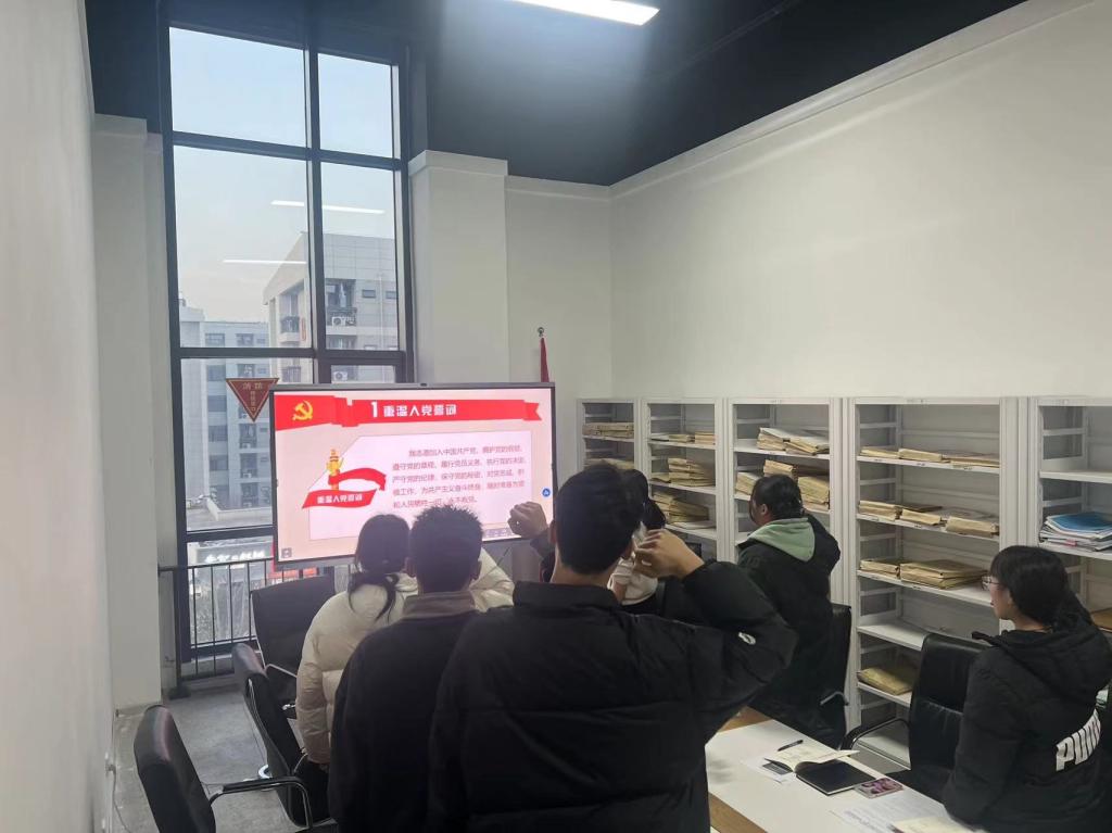 随后,开展了主题党日活动的六项议程:一是重温入党誓词,由体教S5231班的卢馨怡同志带领大家重温誓词;二是交纳本月党费;三是集体诵读党章(第二章);四是开展主题党课活动;五是开展理论学习——习近平总书记重要讲话重要指示精神和中央重要会议精神;六是作为一名党员,结合公司2024年重点工作,如何发挥党组织战斗壁垒作用和党员先锋模范作用,巩固拓展主题教育成果,以此主题开展主题研讨。