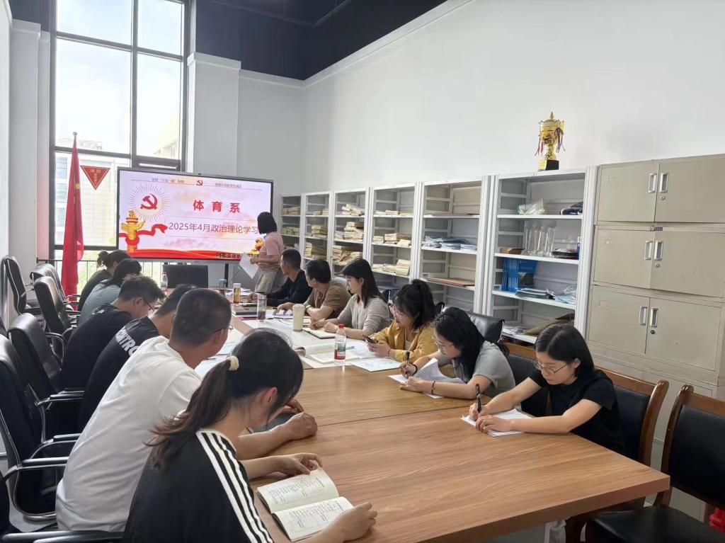 4月17日下午2:30,体育系全体教职工在313会议室开展4月份政治理论学习活动。体育系教工党支部书记邱凤霞主持会议。