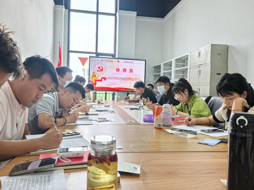 6月12日下午2:00,体育系全体教职工在313会议室开展6月份政治理论学习暨主题党日活动。体育系教工党支部书记邱凤霞主持会议。