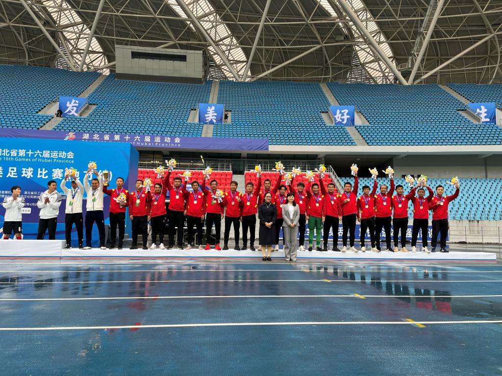 4月15日湖北省第十六届运动会群众体育类足球比赛在宜昌奥体中心落下帷幕。经过7天的激烈角逐,荆州市足球代表队夺得本届省运会群众体育类足球项目的第三名。