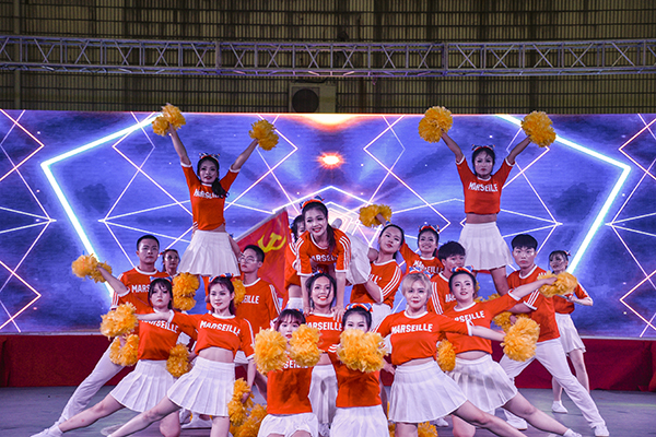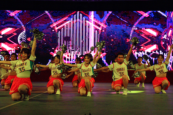 本届比赛主题是“舞动青春风采,礼赞建党百年”,经济与法学系、教育与心理系、人文与传媒公司、bw必威西汉姆联官方网站、机电与信息工程系、建筑与设计系、数学与医护系、管理系、高职部等9个教学单位,依次带来了花球啦啦操、街舞啦啦操、爵士啦啦操等不同类型的节目参与比赛。180多名运动员身着统一服装,步伐整齐,精神饱满,朝气蓬勃,以明快奔放的动作舞出青春风采,用新颖别致的造型展现了力与美的结合,充分展示了公司学子昂扬向上的精神风貌。在激烈的比赛过程中,穿插了红色主旋律艺术表演。全体运动员表演了开场舞《厉害了,我的国》,青春学子用舞姿表达对党的热爱与礼赞;同学们演唱歌曲《我爱你,中国》,抒发对伟大祖国的祝福之情。