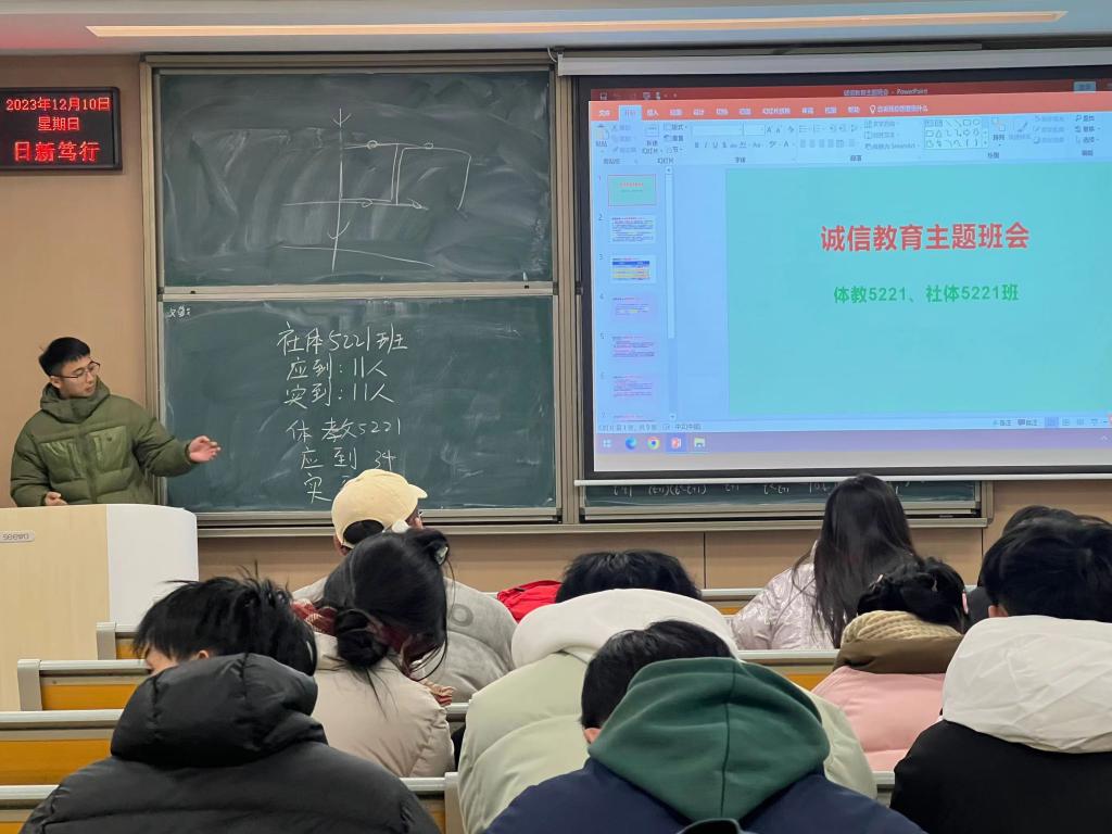 为了提高同学们的诚信意识,树立正确的考试观念,体育系各班班主任于2023年12月12日晚在C418召开了“诚信应考”主题班会。