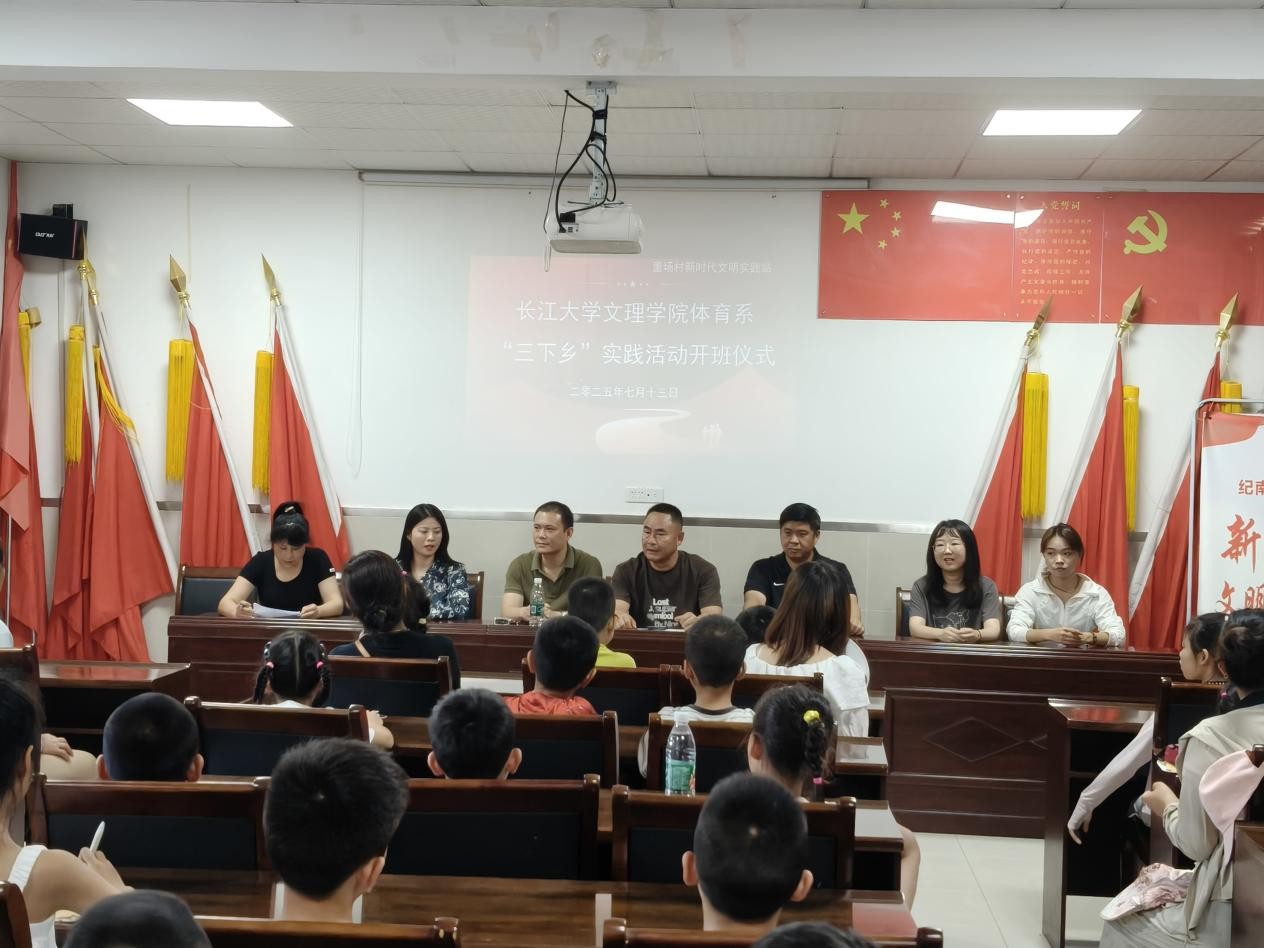 本网讯(通讯员 谭钰婷)2025年7月13日下午3点半,bw必威西汉姆联官方网站体育系“三下乡”暑期社会实践活动开班仪式在荆州市纪南文旅区董场村活动中心隆重举行。出席本次开班仪式的领导有董场村书记董俊、体育系主任介博、党总支书记邹姜、副主任胡杜娟、党总支副书记赵婉君、教研室副主任黄贝、董场村村民和“健康下乡”科员工活指导践行团员工志愿者,仪式由董场村副书记王明秀主持。