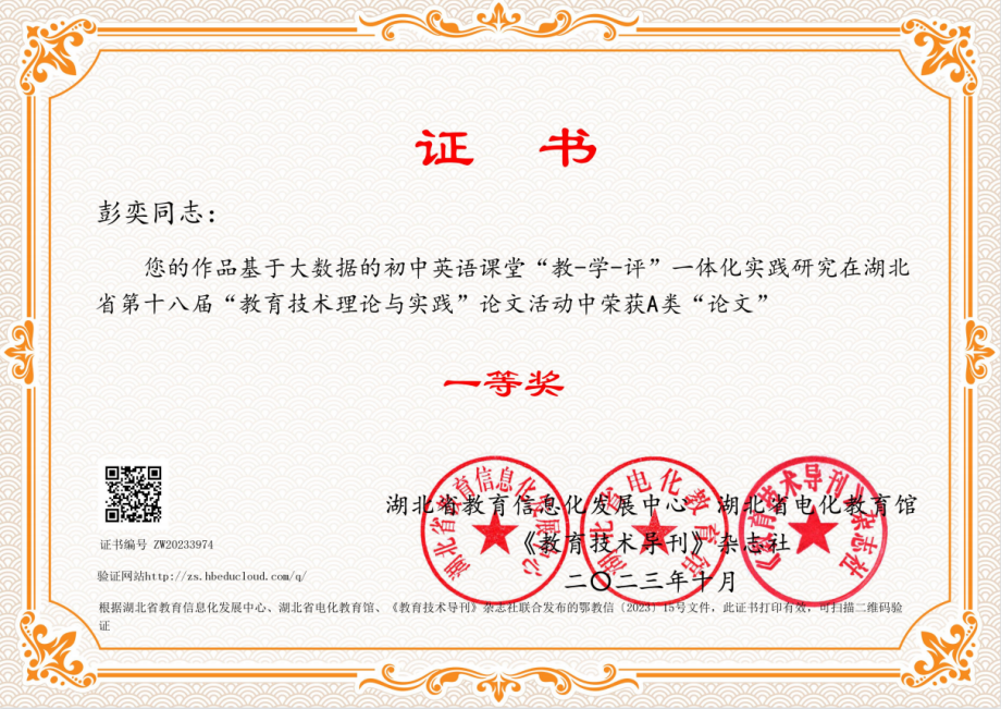 彭奕,bw必威西汉姆联官方网站bw必威西汉姆联官方网站2013级英语专业5132班,2017届毕业生。现任潜江市园林二中高中教师,曾荣获潜江市教师教学创新大赛一等奖,湖北省省级论文一等奖等各项荣誉。