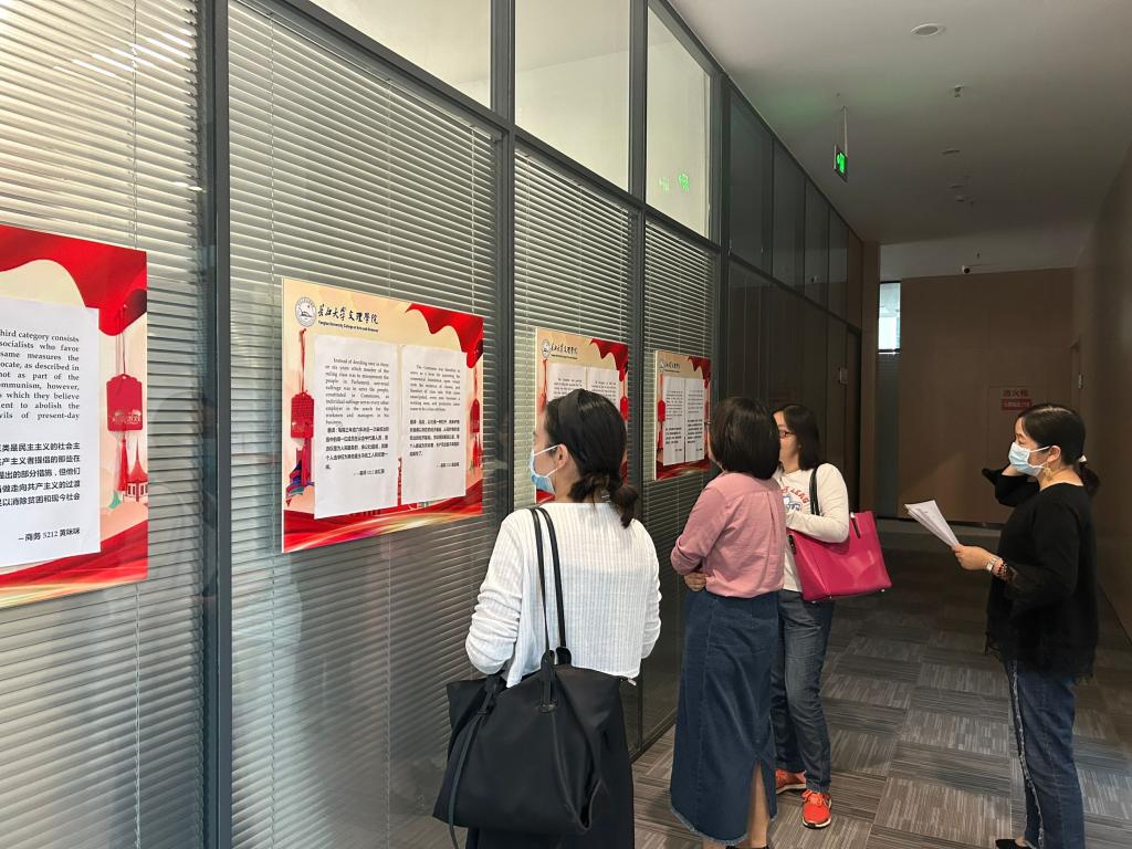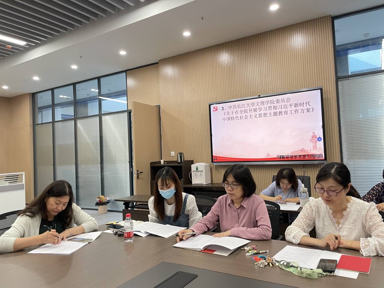 随后,许静婷老师以“深刻理解开展主题教育的重大意义”为主题讲授党课(微党课)。全体党员就作为一名教师党员,谈谈如何通过主题教育学习推动干事创业,进行主题研讨。研讨后集体对员工的译文进行了评阅和更正。
