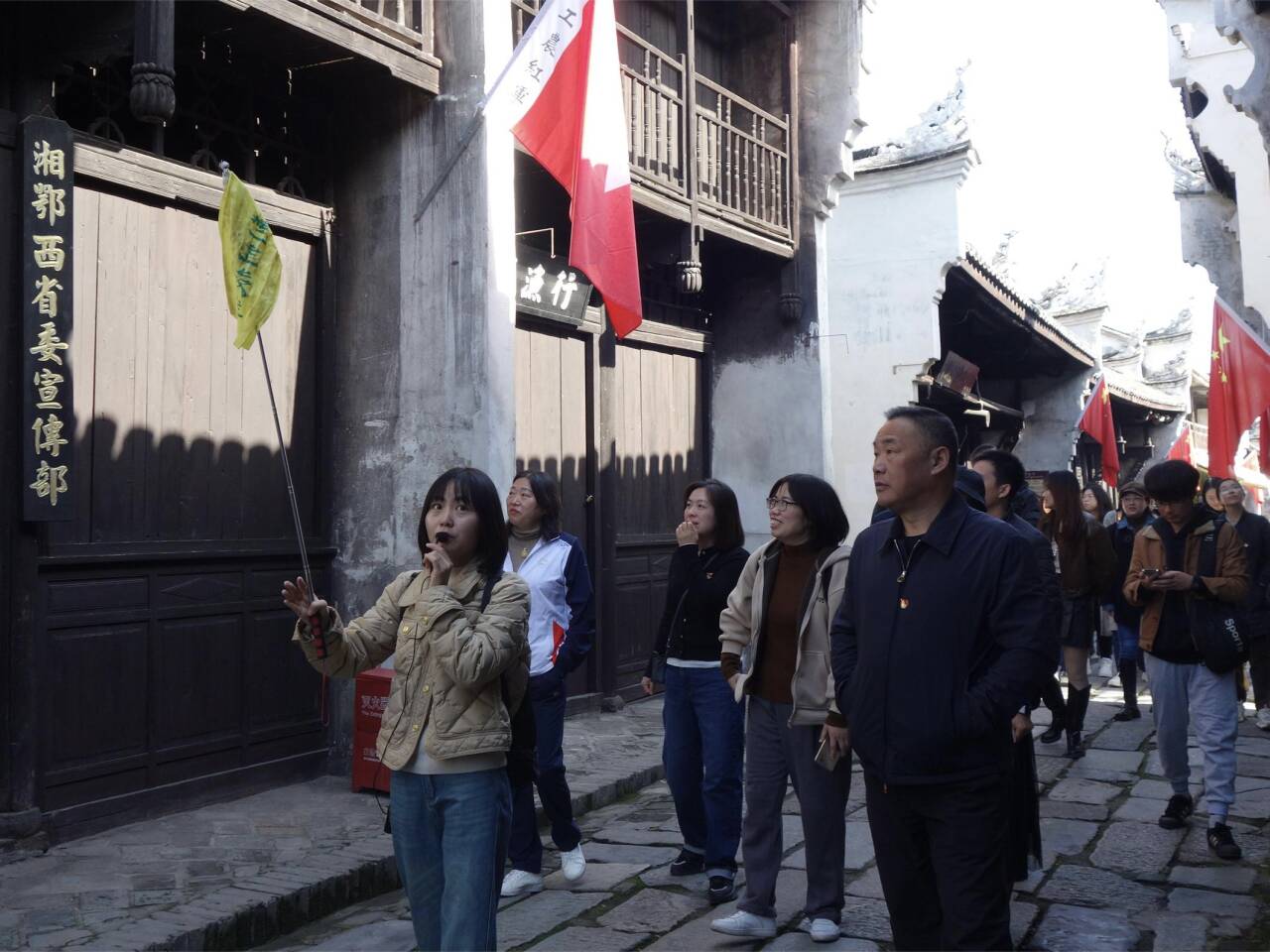 瞿家湾位于荆州洪湖西北35公里处,始建于明代弘治九年,现存有革命旧遗址39处,成为全国优秀爱国主义教育基地和湖北省国防教育基地。11月18日上午,支部党员一同走进瞿家湾古镇,沿着老街参观“中共中央湘鄂西分局”、“湘鄂西苏维埃省政府”、“湘鄂西革命军事委员会”、“工农日报社”等革命旧址,重温老一辈无产阶级革命家开创革命事业的艰难岁月和光辉事迹。