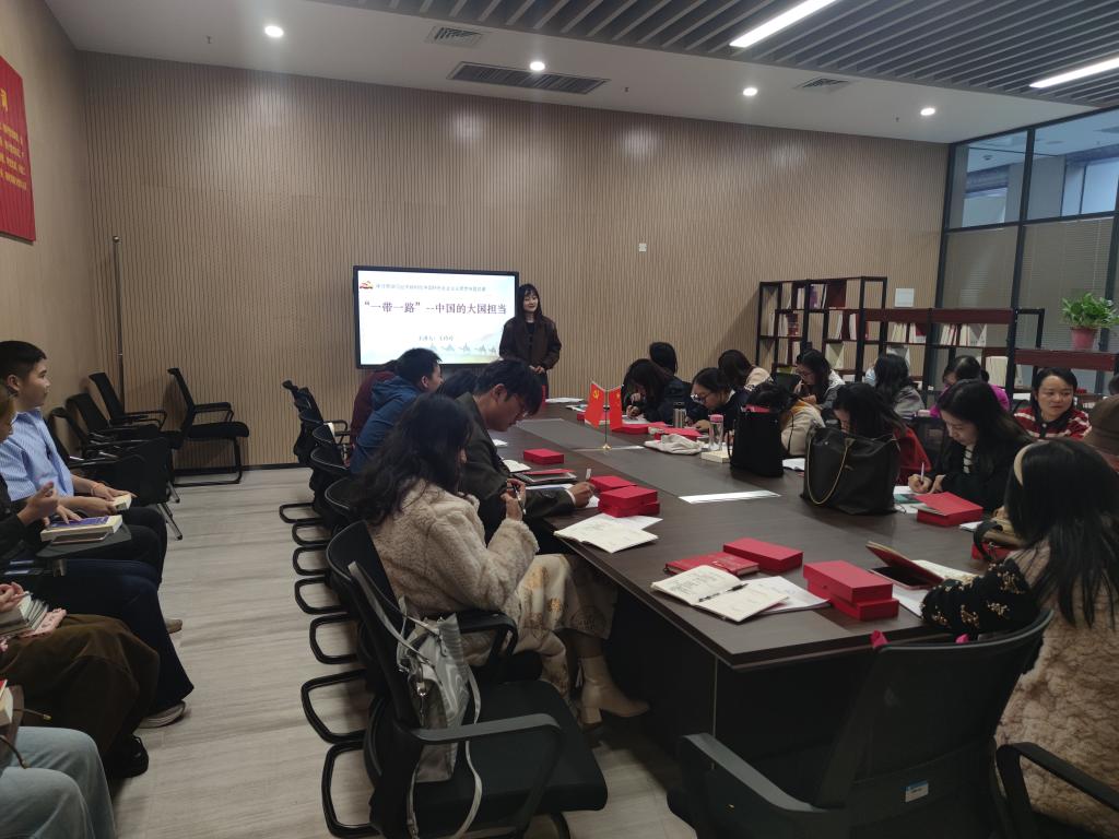 随后,王玲玲书记为党员讲授党课(微党课)。全体党员就作为一名教师党员,结合习近平总书记在中国共产党第十九次全国代表大会上的报告,谈谈“一带一路”倡议的丰富内涵,如何将“一带一路”倡议落到实处,展开研讨。