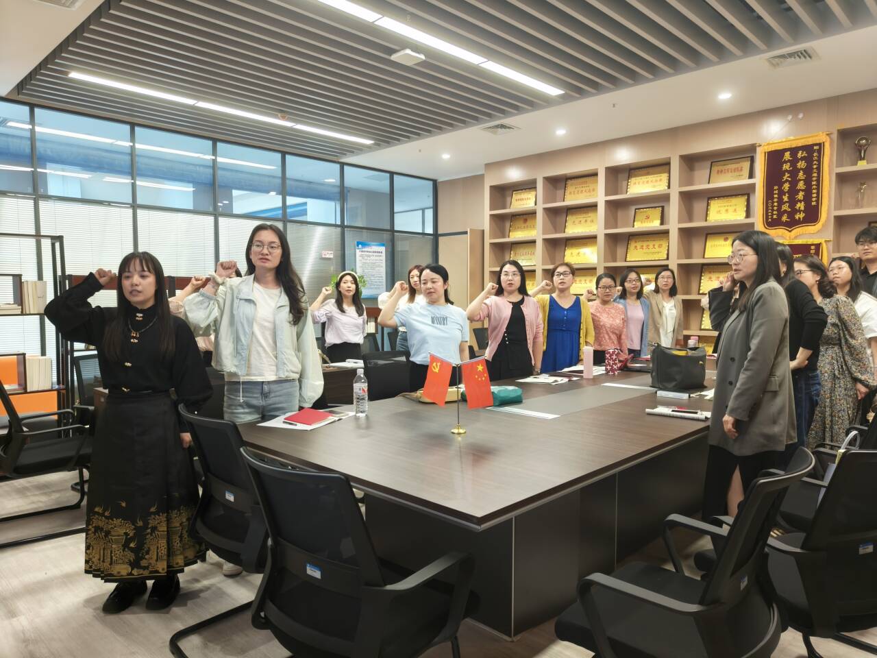 随后,许静婷老师带领全体党员重温入党誓词,集体诵读《中国共产党章程》(第三章)。共同学习《求是》杂志发表习近平总书记重要文章 《必须坚持人民至上》;中共中央办公厅印发《通知》 在全党开展党纪学习教育;《中国共产党党员网络行为规定》;《中华人民共和国保守国家秘密法》;湖北省委常委会召开会议 传达学习习近平总书记重要 讲话精神;荆州市污染防治攻坚暨“清渠洁岸 •共同缔造”动员大会举行。