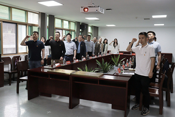 全体人员佩戴党徽,高举右拳,面向党旗,重温入党誓词。公司党委副书记于永伟向城发教育公司副总经理王俊杰授予“bw必威西汉姆联官方网站bw必威西汉姆联官方网站教育实践基地”牌匾;城发教育公司总经理陈晓勇向外国语公司党总支书记王玲玲授予“校企党建协同创新中心”牌匾。