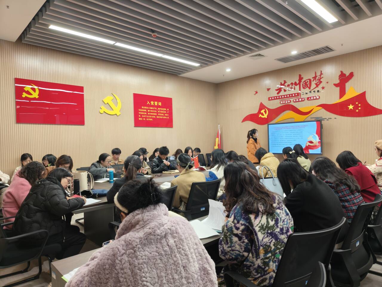 会议伊始,开展支部主题党日活动。王玲玲书记带领全体党员重温入党誓词,共同学习学习《党章》(第二章);习近平总书记在湖北考察时强调 鼓足干劲奋发进取 久久为功善作善成 奋力谱写中国式现代化湖北篇章;习近平总书记对社会工作作出重要指示强调 坚定不移走中国特色社会主义社会治理之路 推动新时代社会工作高质量发展;习近平总书记在省部级主要领导干部学习贯彻党的二十届三中全会精神专题研讨班开班式上发表重要讲话;《求是》杂志发表习近平总书记重要文章《促进高质量充分就业》;省委常委会(扩大)会议举行 传达学习习近平总书记考察湖北重要讲话精神;中央办公厅负责人就《整治形式主义为基层减负若干规定》答记者问。