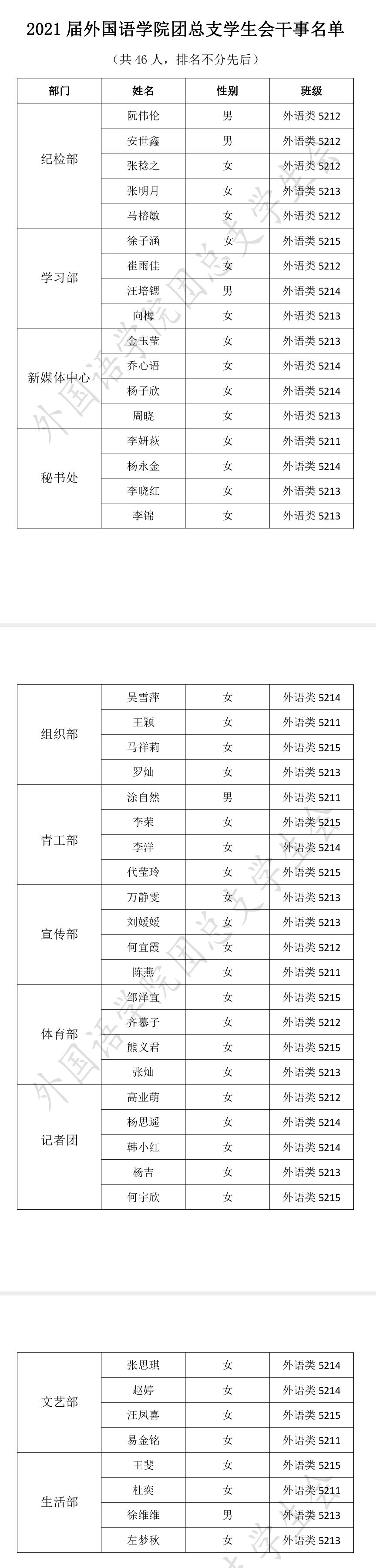 bw必威西汉姆联官方网站团总支员工会招新工作已结束,经过两轮面试,最终有46名同学入选:
