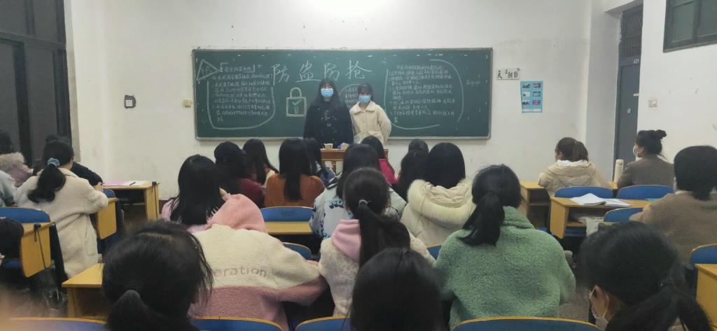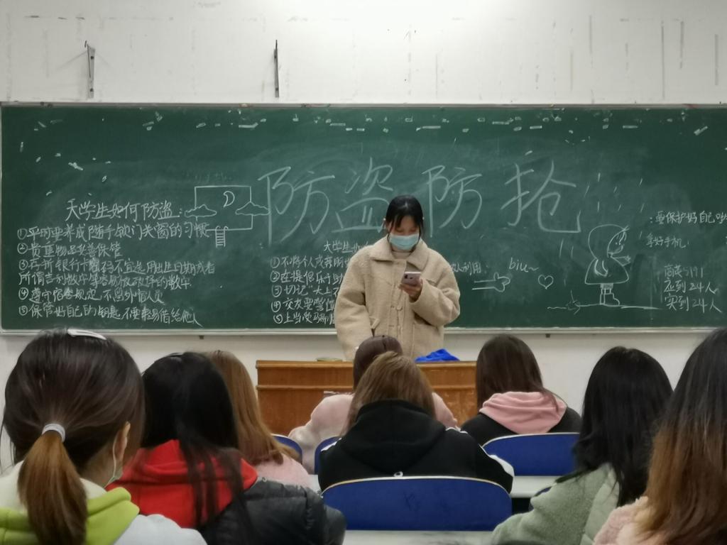 会上,由各班班长带领同学们学习防盗防抢知识,如办理银行业务时要提高警惕;对于上门推销一概拒绝;单身女性夜间避免单独外出,务必留心生人尾随;骑车走路时要看好个人物品。同时强调家中无人、夜间睡觉、机动车停放、公共场所等情况下如何防盗的方法。
