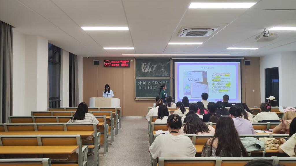 首先,各部门代理部长依次上台进行工作汇报,以PPT的形式从月度工作概述,工作完成情况,成果项目展示和未来工作规划四个方面逐步汇报。随后,主席胡雨总结各部门工作汇报情况,副主席刘志超就本月出现的工作问题提出反馈意见,副书记于普讲解PPT中出现的问题,副主席龚晓凤进一步强调留任问题,副主席袁偲仪结合几位主席的建议分享经验。最后,辅导员宋静静发表讲话,对本次汇报工作存在的问题进行总结,并提出改进措施。
