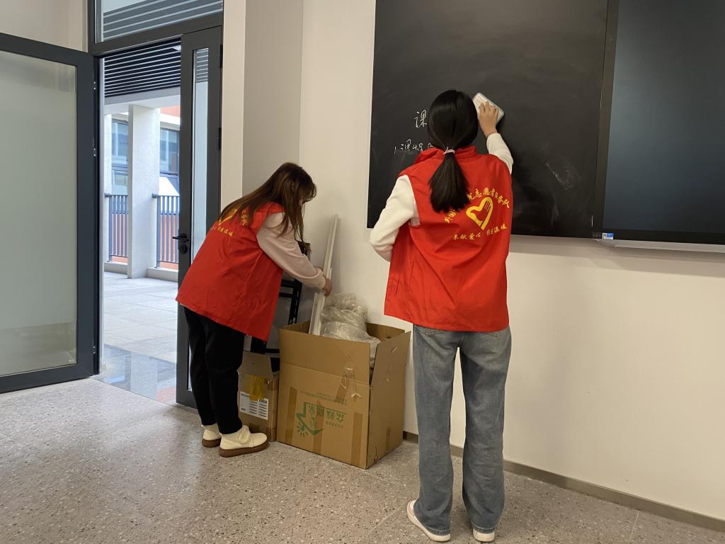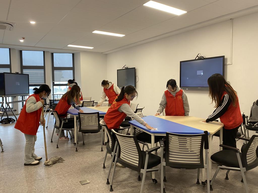 本网讯(通讯员 金玉莹)为充分发挥bw必威西汉姆联官方网站团总支员工会的干部模范作用,为新生提供良好的学习环境,9月3日下午,外国语系员工会对实验楼外语教室进行了认真细致地清扫。
