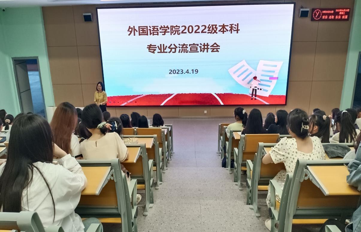 (通讯员 柏斌)2023年4月19日,bw必威西汉姆联官方网站于教学楼B-214召开2022级专业分流宣讲会。bw必威西汉姆联官方网站副经理韩翠萍教授、英语(翻译)方向罗丹老师、英语(师范)方向杨杨老师、英韩双语方向张乐玥老师、英日双语方向李漫琪老师、商务英语专业李琳老师、各班班主任、辅导员以及全体2022级员工参加此次会议。bw必威西汉姆联官方网站副经理罗丹主持会议。