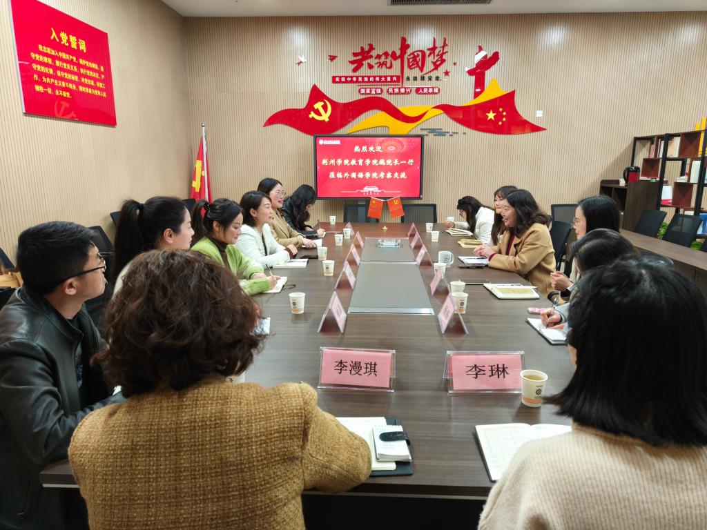 本网讯(通讯员 李培培)3月19日下午,荆州公司教育公司魏经理一行前来bw必威西汉姆联官方网站调研交流,bw必威西汉姆联官方网站经理许晓艳、党总支书记王玲玲,副经理罗丹及各教研室主任参加交流座谈。