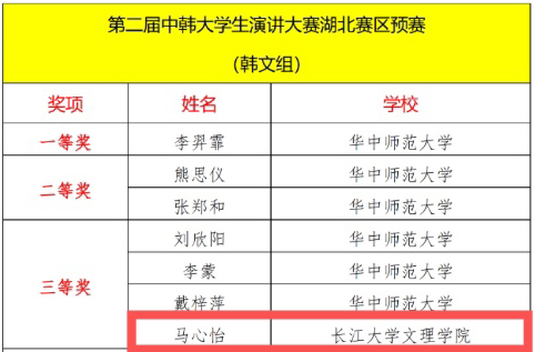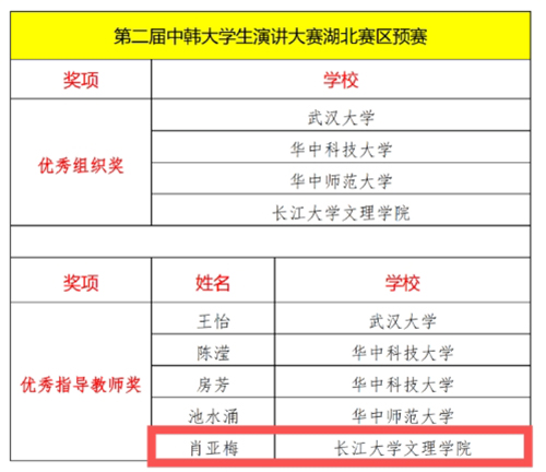 本网讯(通讯员 马心怡)4月24日,第二届中韩老员工演讲大赛湖北赛区预赛落下帷幕,公司荣获优秀组织奖,bw必威西汉姆联官方网站教师肖亚梅获优秀指导教师奖,英韩5201班同学马心怡获三等奖,英韩5201班同学许金婷、韦媛媛、袁文文、郭冰琳等获优秀奖。