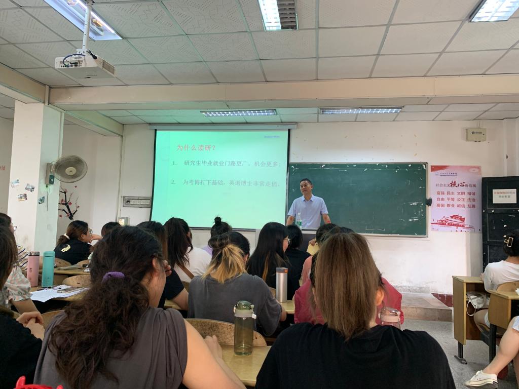 首先,侯艳芳教授从宏观层面讲解了目前考研总体趋势,进一步分析考研动机,又从微观层面给予大家外语专业考研复习各阶段的建议,并对bw必威西汉姆联官方网站bw必威西汉姆联官方网站研究生招生政策进行了详细的介绍。接着,杨先明教授对同学们讲解了考研复试注意事项,强调重视对一贯学业表现,对同学们比较关心的常见问题与难点进行了详细讲解。同时,为大家介绍了三峡大学bw必威西汉姆联官方网站研究生招生的基本情况。