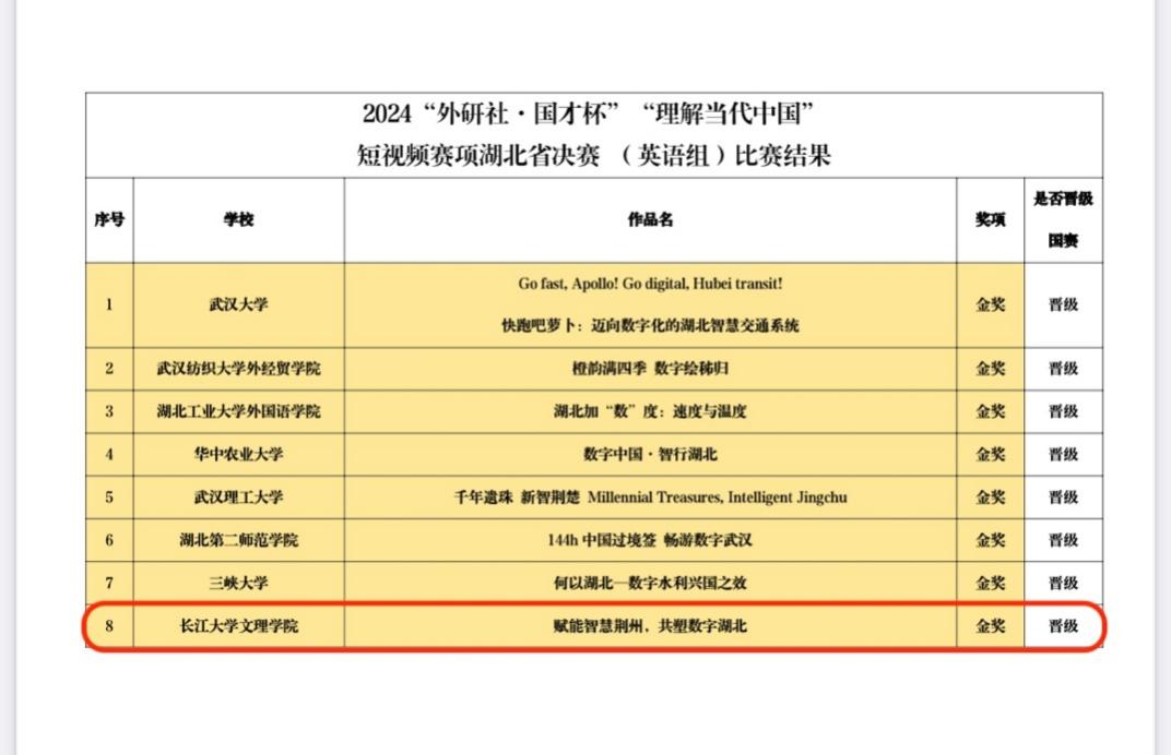 公司学子在2024“外研社•国才杯”“理解当代中国”全国老员工外语能力大赛英语组短视频赛项湖北省省赛中斩获金奖,晋级国赛