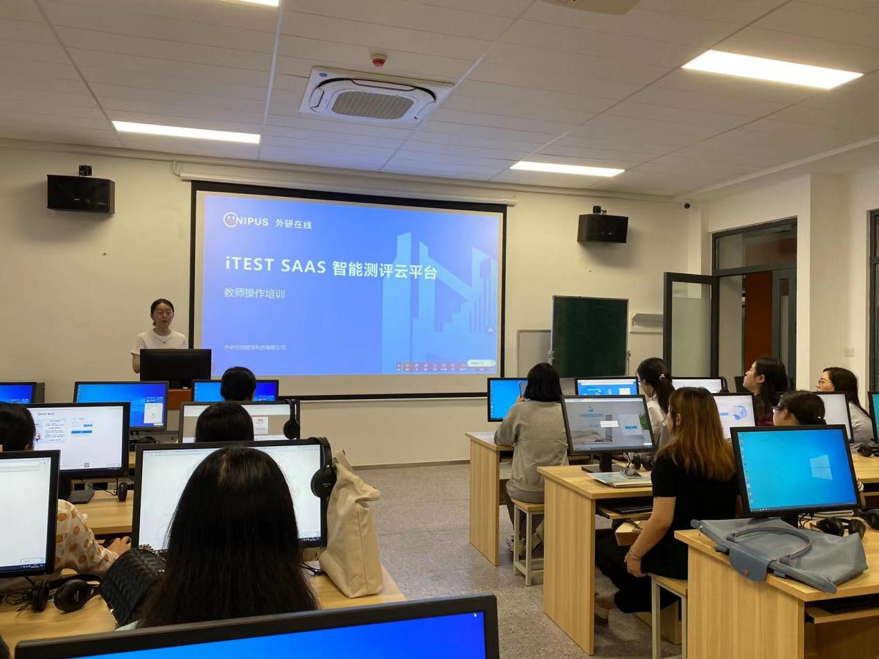 培训流程主要分为三项:iTest和iWrite教师实操培训;智能翻译教学与创新实践平台培训;跨境电商英语实践教学平台和国际商务谈判实践教学平台培训。三场培训分别由外研在线数字科技有限公司、传神语联网网络科技股份有限公司和中语智慧科技有限公司的培训师为老师们做了细致地讲解与演示,介绍了各个平台的具体功能、操作步骤和流程,以及注意事项。