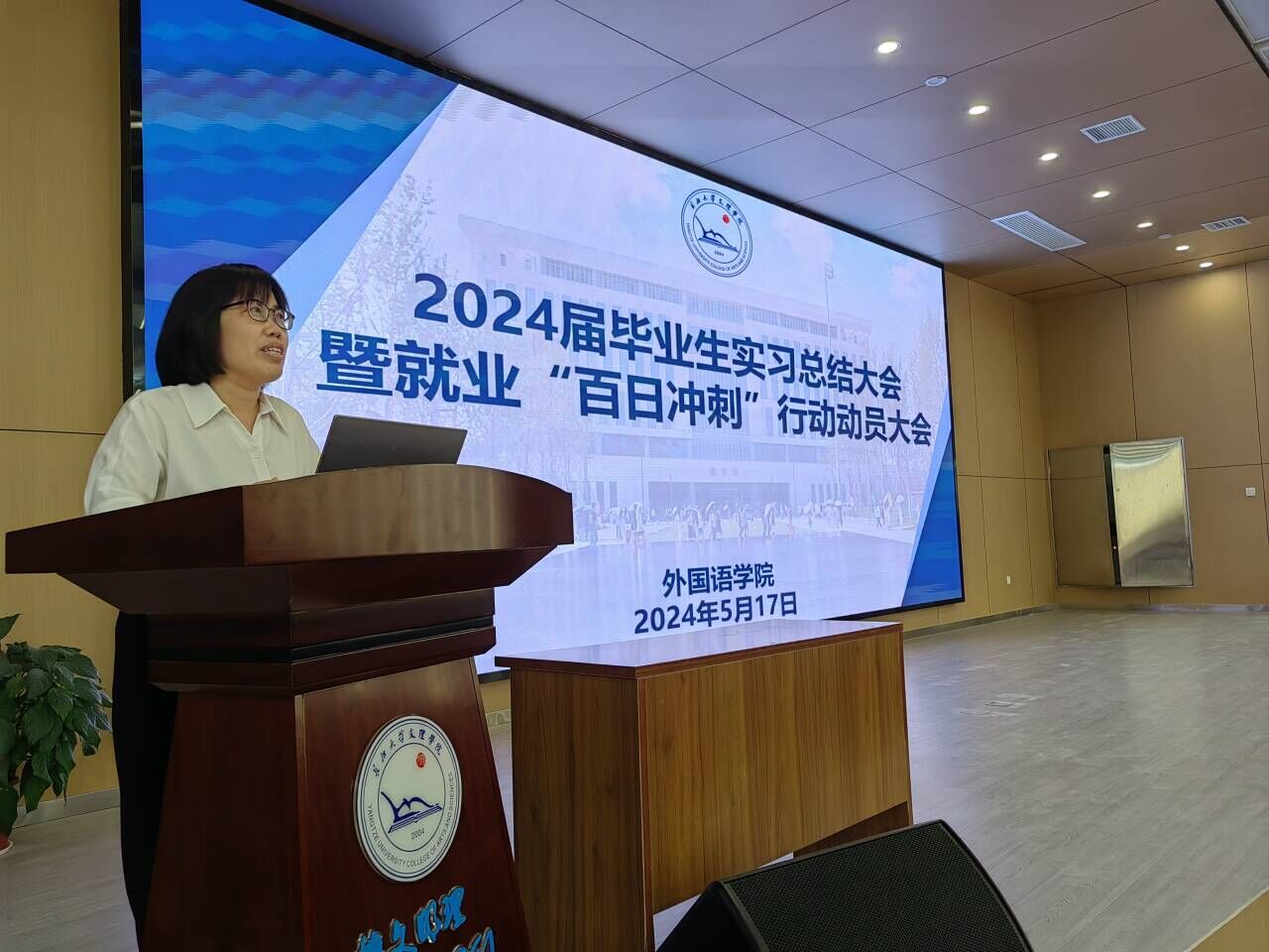 随后,罗经理就毕业生实习、毕业论文等教学工作进行详细讲解,希望每一位同学不忘初心,继续以饱满踏实的工作热情投入到工作岗位中,从而实现自己的人生价值。韩经理以“外”、“国”、“语”三个关键字寄语毕业生,希望毕业生们在人生的新阶段继续扬帆远航。
